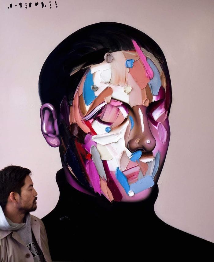 We love the way his faces are obscured, yet retain a physicality and depth. The colors also add to the way the faces showcase a range of emotions, no matter how veiled by abstraction they are. Fascinating work, via Bored Panda: