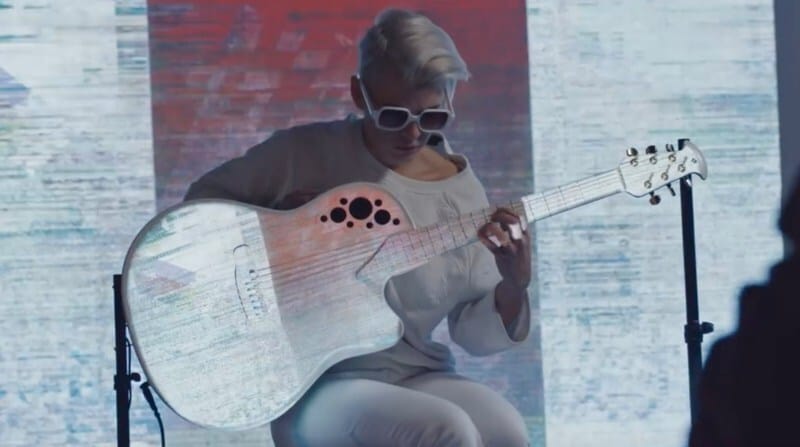 We’ve long been fans of Kaki King’s impressive guitar-playing abilities, and the moods she’s able to convey with her singular style. Now her work is taken to the next level, with a computer controlled, projection-mapped guitar that changes appearance like a chameleon. Take a look.