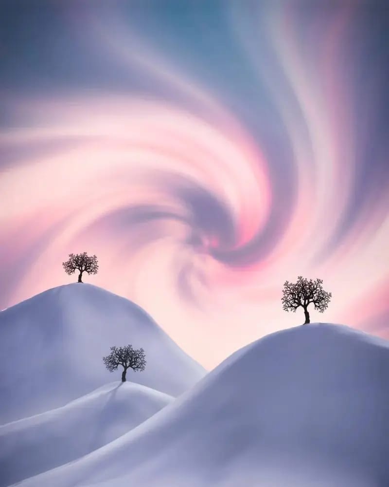 We love the sharp black and white contrast of Kathrin Federer’s designs, the way she combines elements to create huge scale. And we appreciate her ability to take us on a surreal journey, her work the combination of different photographic elements, combined to tell a visual story.