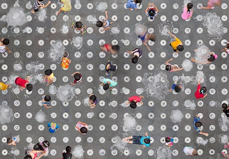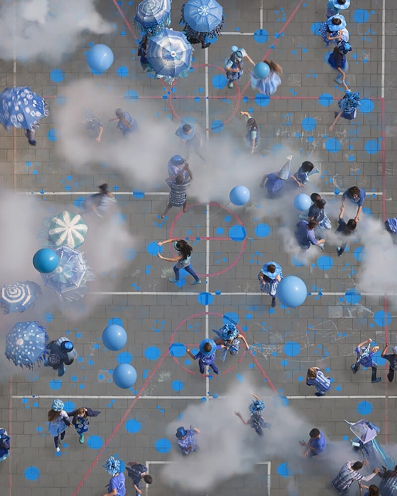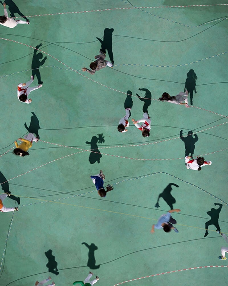 Overhead photos can showcase an entirely different scene than ground-level can. Especially when the subjects are dancing, playing, and congregating. In her series, Katrin Korfmann captures scenes of fun and motion with a great diversity of backgrounds and textures. In one, children simultaneously jump into a pool with their clothes still on. In another, kids jump rope on a playground, with multi-colored ropes swinging. Her work is engaging, kinetic, and fun. Via Fubiz:
