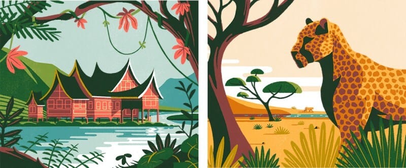 If you’ve noticed coffee bags in the last few years, they’ve become rather artistic, with small, boutique roasters designing minimalist (or maximalist) packaging. Starbucks has some very nice graphic design for their reserve roasts. Now Target is in on the design-y bags, with a new line for Archer Farms, their in-store brand. Illustrated by Tom Haugomat, the packages feature warm illustrations that showcase the tropical countrysides from where the beans originate. Graphic design by Jules Tardy & Flora Chan.