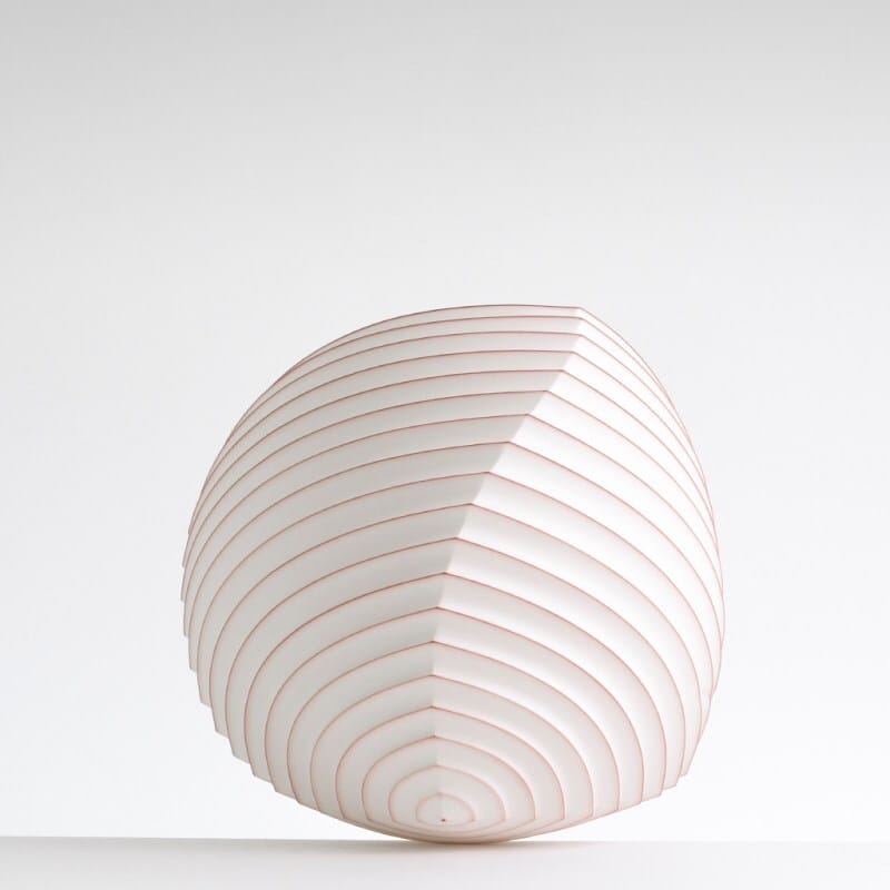 Mark Goudy’s porcelain pieces look like they’ve been folded from paper, but they’re made of clay—thin, light, and full of quiet beauty. Each one rocks gently when set down, balanced on geometric folds that feel both precise and natural.