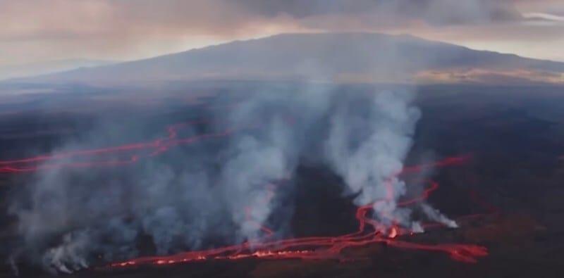 Video showing fissures erupting on the Northeast Rift Zone of #MaunaLoa this morning. Fountains of fissure 3 were measured up to 25 m (82 ft) in height. More spectacular photos and videos available on the Mauna Loa website. https://t.co/GoYn4UOT4W #MaunaLoaErupts pic.twitter.com/DTL70XJZuI