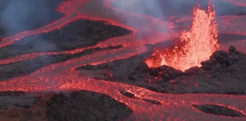 It’s an exciting natural event, and the footage below shows the incredible active flows and bursts of molten lava.