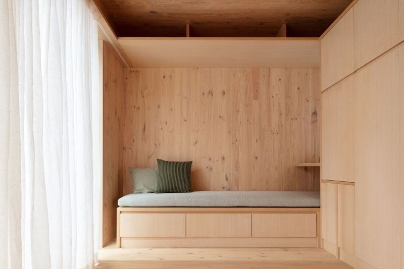 Designed by Australian firm TRIAS in collaboration with FABPREFAB, the Minima is 215 square feet, and features high quality cypress cladding and cross-laminated timber interior, with clever storage and built in seating.