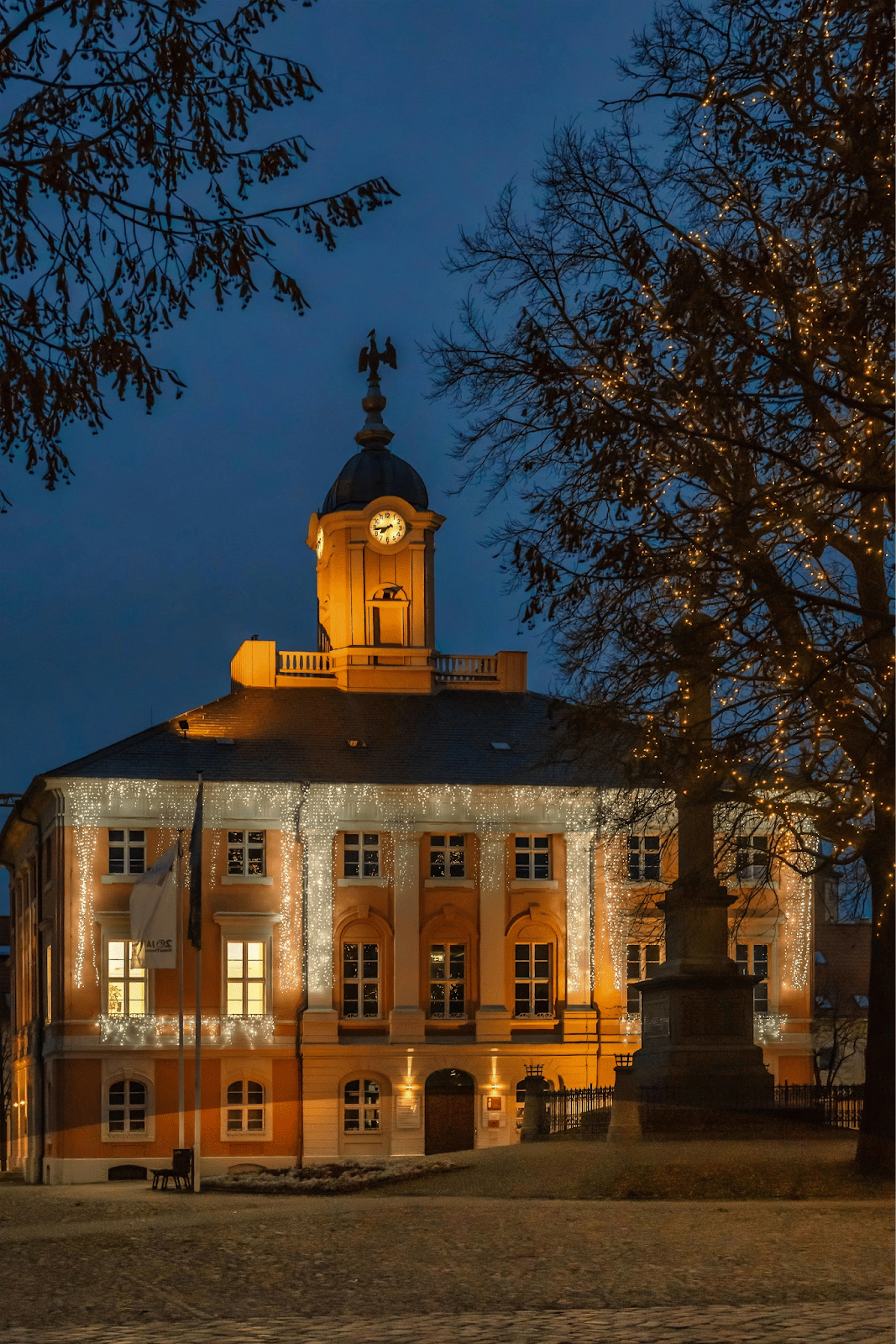 Choose one “hero” area—a wreath, statue, or tree—as the focal point and let everything else subtly support it.
