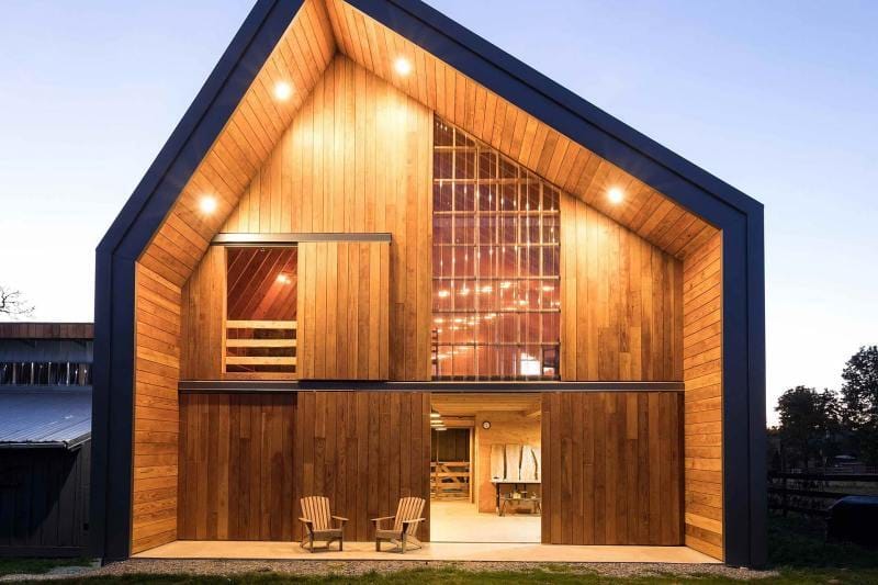 In the last decade, we’ve seen a number of historic barns turned into modern living spaces. They’re captivating, and provide a great link to history, but they’re not functional barns. That’s why we’re impressed by the Swallowfield Barn by Motiv Architecture in British Columbia. Located on a beautiful hobby farm, the barn has a contemporary shape, using reclaimed timber, and an offset gabled roof with built-in lighting. Inside, the barn is setup with a workshop, as well as a spacious hayloft, meant for both farm utility and a fun, casual meeting spot for friends and family. Via Uncrate: