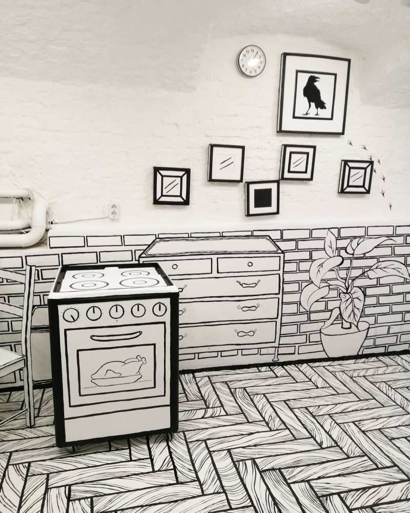 Café Bw in Moscow will make you feel like you’ve entered a two dimensional world. Meticulously painted to look as if it came off a page from a comic, it’s a surreal experience to step through the door and feel part of an illustrated world.
