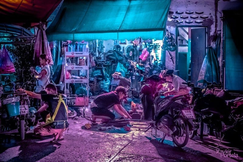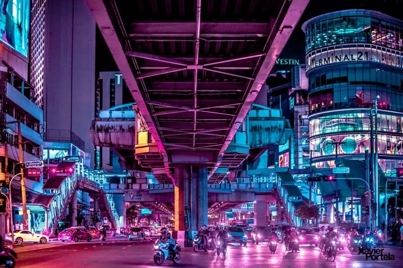 Bangkok is alive with color and smell and sound, but even if you’ve never visited, photographer Xavier Portela can give you a sense for how the city comes alive in neon light at night. His series #Bangkokglow gives a sense of a steady pulse of life at night as people speed overhead on highways, while street vendors serve all manner of food and drink below. There’s a great continuity of light and color in his images, a steady purple and orange glow that makes these diverse photos all seem part of a family, and gives Bangkok a recognizable night vibe. If “smell-o-vision” were a thing, this post would come alive with the potent and distinct aromas of Thai cuisine and Southeast Asia in general. This series is a follow up to his other “glow” series that focus on Tokyo and Hong Kong, respectively. Great work, via Behance.