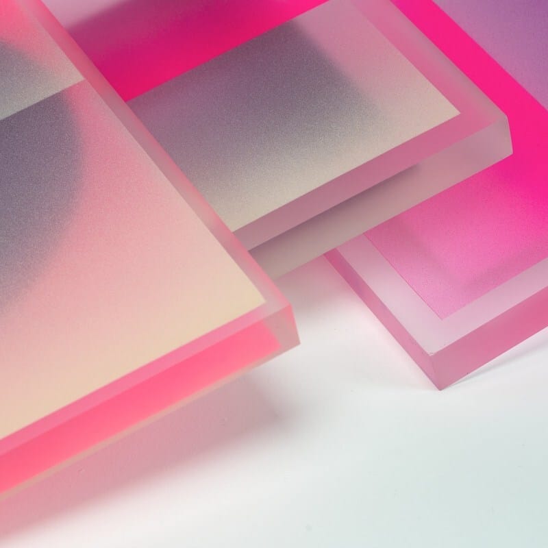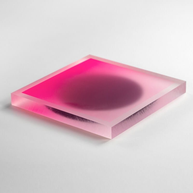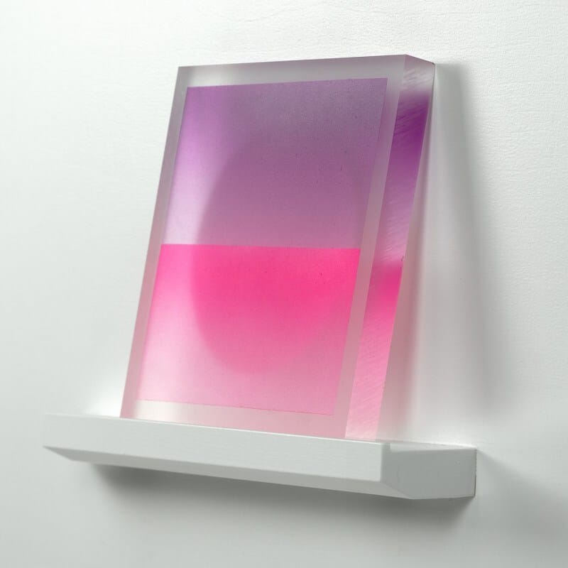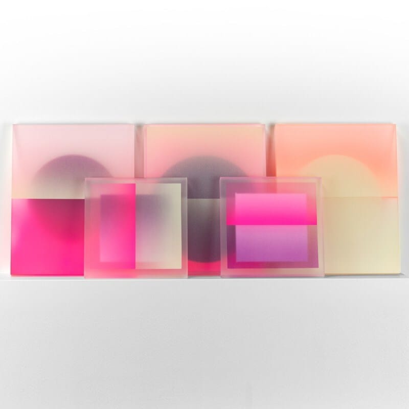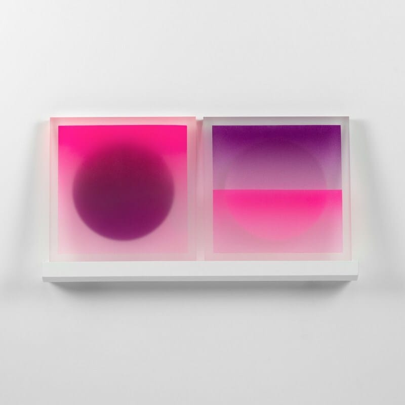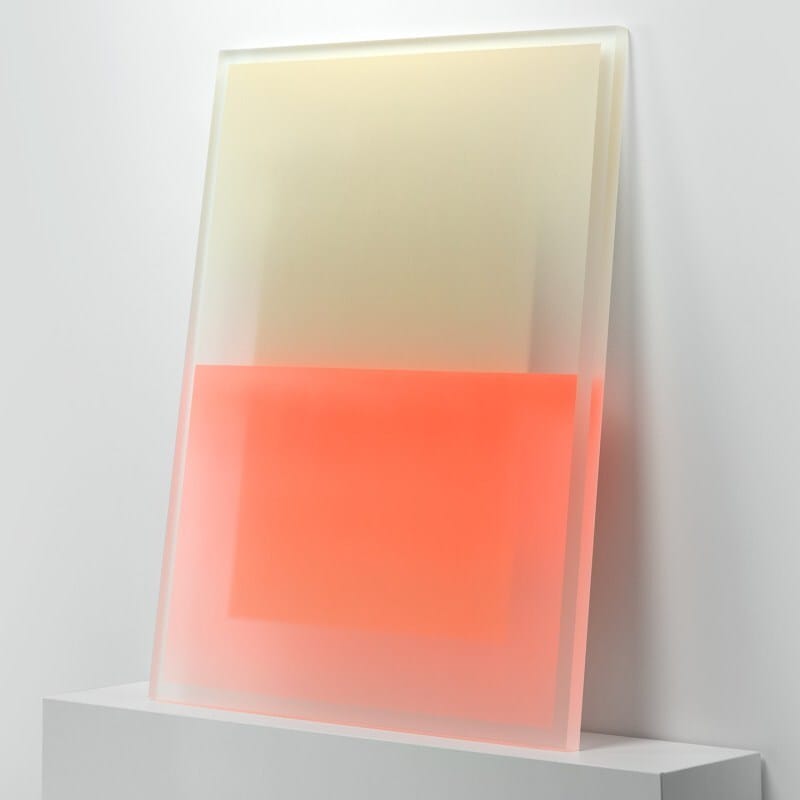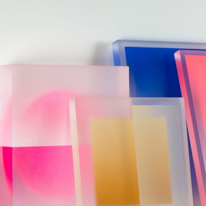 His layered acrylic sculptures shimmer in color gradients that shift with light and movement. They’re part design, part illusion, part something else entirely.