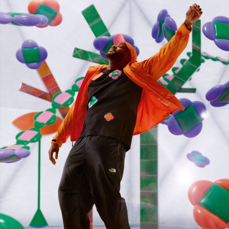 Clothing company The North Face has a new collaboration with the artist. Featuring a wide range of apparel, it ditches the traditional outdoor clothing aesthetic for something more lively, fun, and full of movement.