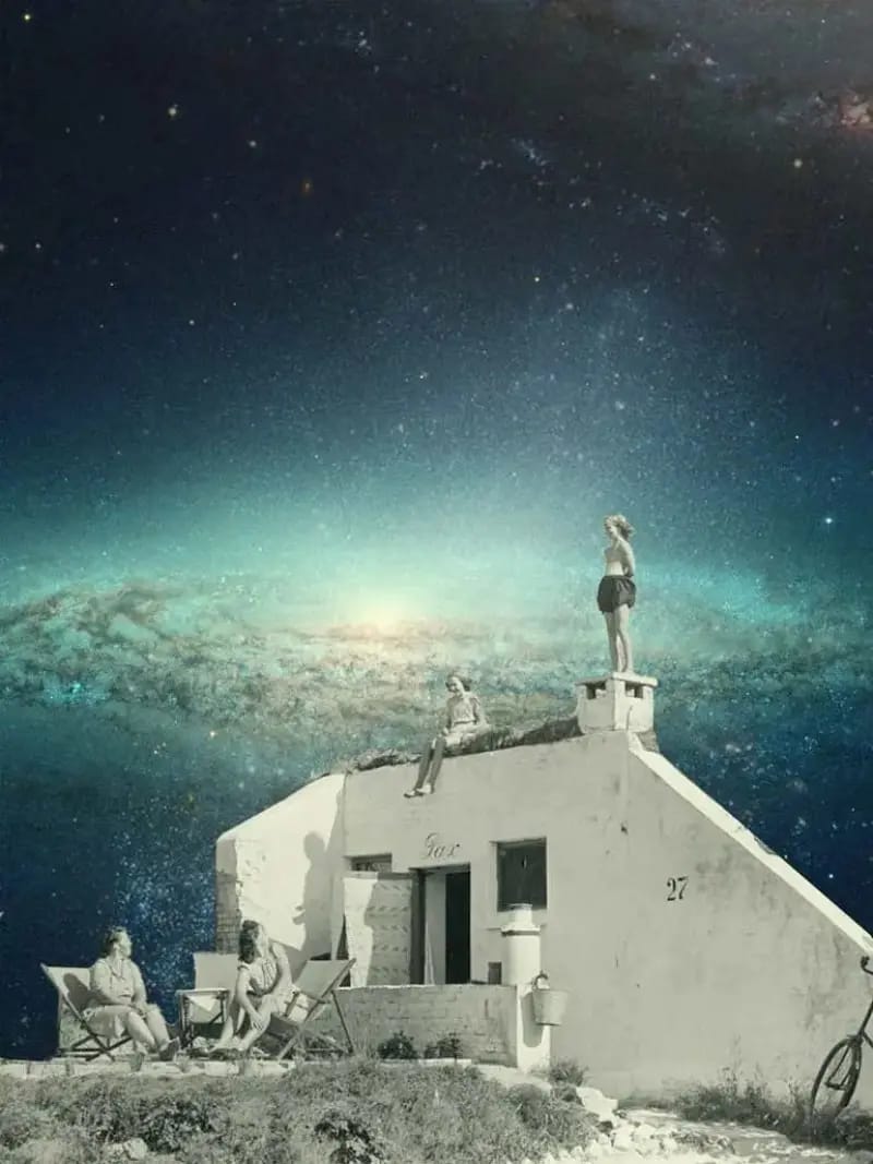 It’s a fitting description, as the work has a warm, vintage quality to it, with images of people in their pastimes, set against dramatic space backgrounds. They provide a great visual escape from the everyday, and inspire a sense of wonder.