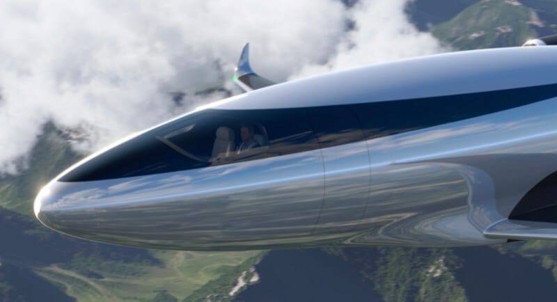 It also achieves a laminar flow airfoil, which means that it avoids nearly all the drag of a traditional design, and also eliminates contrail formation, meaning no white trails in the sky.