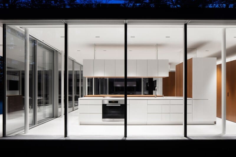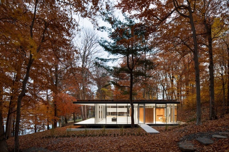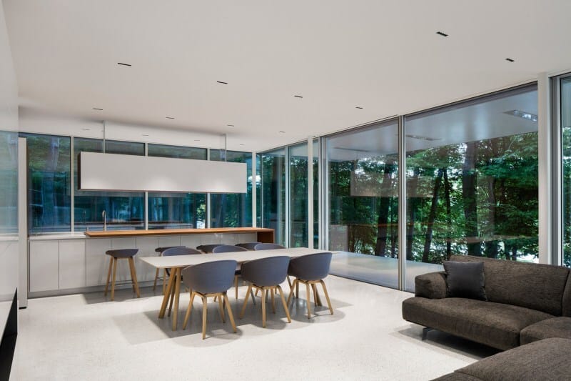This ultra-minimalist, sleek home in the Canadian wilderness is set on a lake, and should satisfy your modernist dreams.