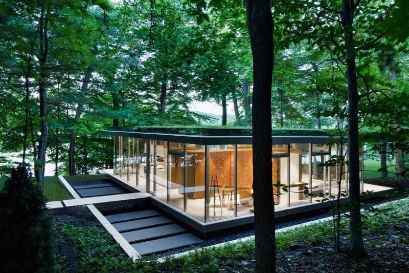 With walls entirely floor to ceiling windows, the view out into the wooded setting are supreme, and the house’s clean lines are especially impressive. The home’s relatively small, two bedroom, one bathroom footprint is offset by the uncompromising design. From French-Canadian architects Daoust. Via Uncrate: