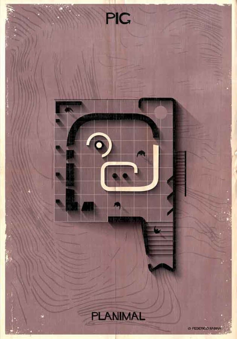 Combining animal faces with abstracted floorpans, Federico Babina has created a clever series he calls Planimals.
