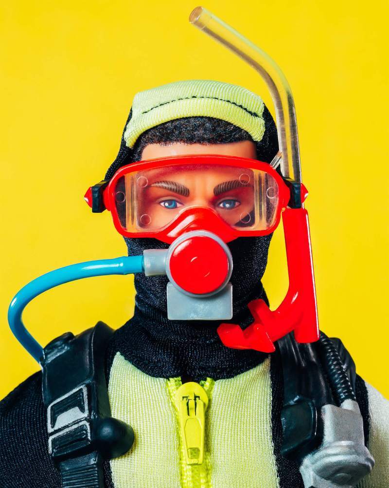 The simple close-ups of favorite action heroes from the 70s, 80s, and 90s reveal the hand painted details, and the plastic imperfections that make these toys lovable. Complementary color backgrounds make the plastic characters pop even more.