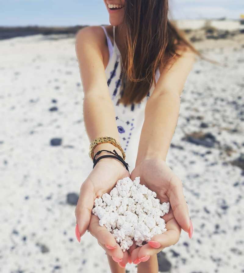 This remarkable beach in the Canary Islands has ‘sand’ that looks entirely like popped popcorn. Actually a result of fragmented white coral that has washed ashore, the sight is still remarkable to see. And it makes for really fun photography.