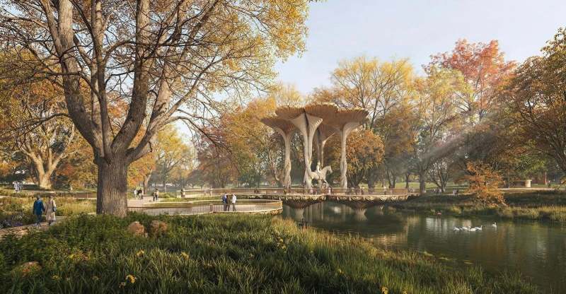 The design is a collaboration between Heatherwick and sculptor Halima Cassell, landscape designers MRG Studio and engineering studios Webb Yates and Arup.