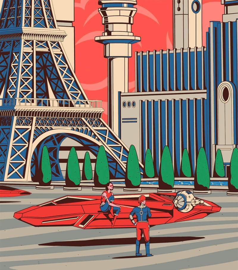 Azerbaijani artist Orkhan Isayev has an impressive illustrative series called Utopia, where he explores famous landmarks through a retro-futuristic lens.