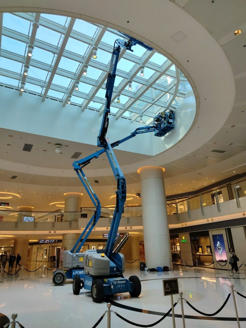 An articulating boom lift will provide you with maneuverability, especially if there are obstacles on the site: building materials, ceilings, or other machines. It will allow you to work where a scissor lift simply cannot cope.