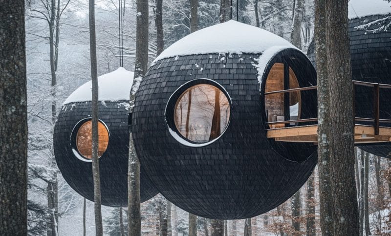 The post Shingled Sphere Treehouses Perched in the Forest Make for a Magical Escape appeared first on Moss and Fog.
