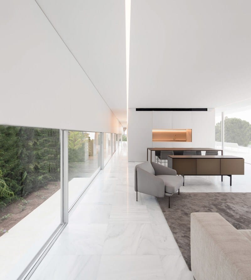 Designed by Fran Silvestre Arquitectos and located in Valencia, we appreciate the exacting vision of the design, from the stark white exterior to the impressive roofline and unadorned overall feel.