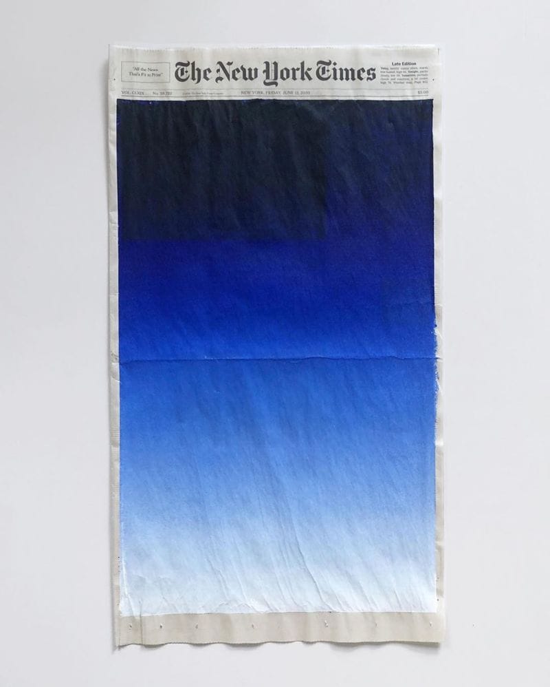 As creative New Yorkers do, they make the best of it. For Sho Shibuya, that meant painting a sunrise each morning as seen from his small city apartment window. His canvas is the front page of the daily New York Times, a very fitting and unique vessel for the paintings.