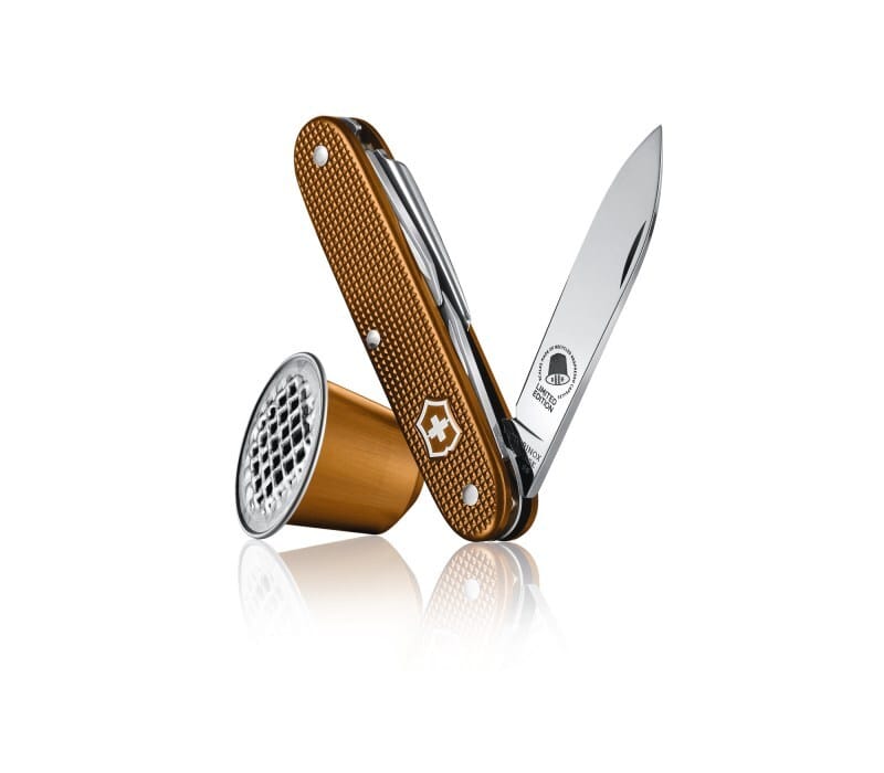 Wait, what? The famous Swiss Army Knife brand teaming up with Nespresso doesn’t make much sense on the surface. We haven’t reached coffee-dispensing pocket knives yet, have we? Sadly, no. But it is a clever collaboration that takes old aluminum Nespresso capsules and recycles it for the body of the knife.