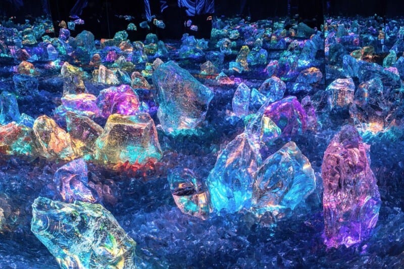 As always with teamLab, the environment reacts to you. Walk through a darkened passage and patterns bloom at your feet.