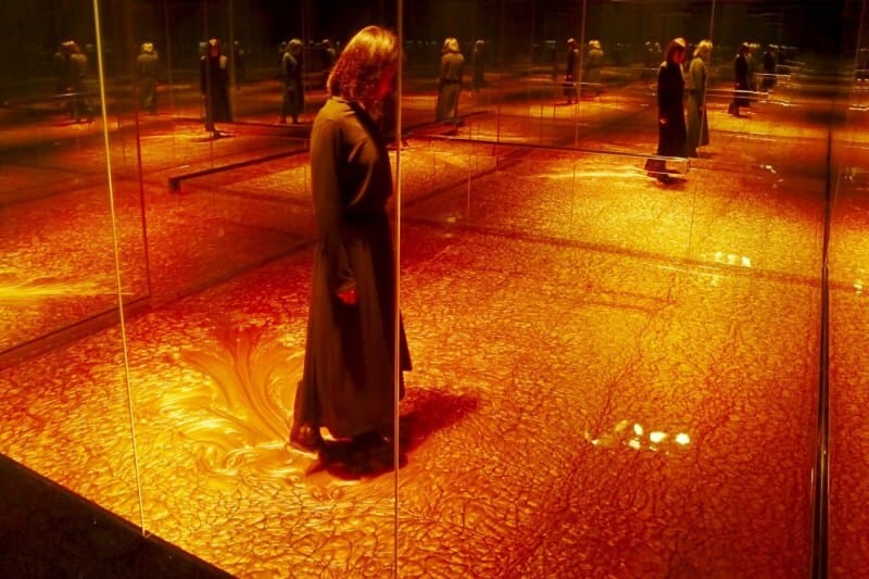 Stand still and colors shift around your silhouette. The work feels alive, almost breathing, and it turns every visitor into part of the artwork itself.