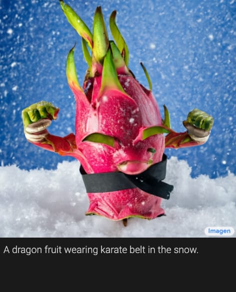 Google’s take is called Imagen, and below are a number of examples of what the computer dreamed up. Again, humans create a simple instruction, like: “A small cactus wearing a straw hat and neon sunglasses in the Sahara desert”, and the computer does the rest.