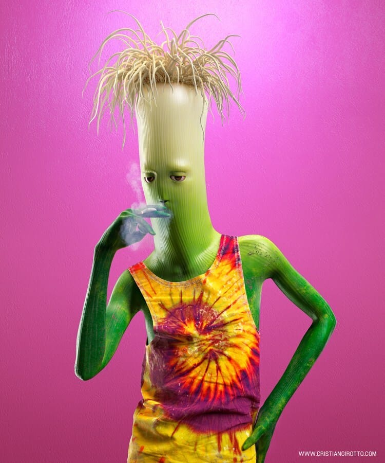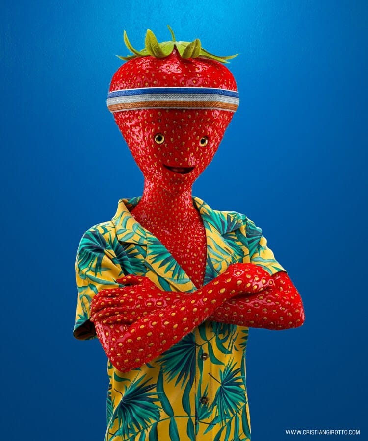 A play on “the beat generation”, this series of hilarious yet amazingly detailed fruit and veggie people is worthy of a closer look. Paris artist and photographer Cristian Girotto uses Cinema 4D and other 3D rendering programs to bring these vintage characters to life. Click on the images to check out some of the amazing detail. Via Behance: