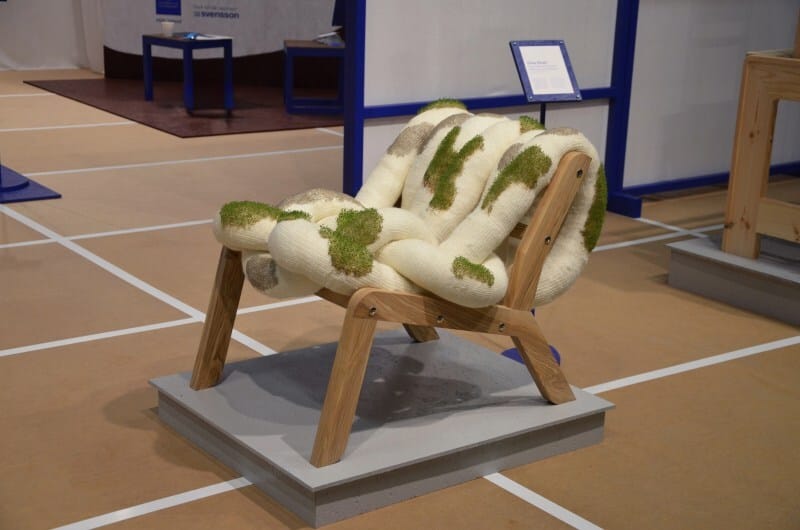 Dubbed the Chia Chair, the design features a clean wooden frame with a puffy knitted upholstery that is in tube form, and weaves its way in and around the chair’s frame.