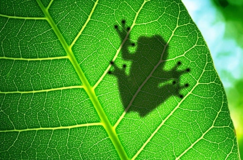 These nocturnal creatures thrive in humid, tropical rainforests where they can be found on the underside of leaves, close to water bodies that their offspring will need for development.