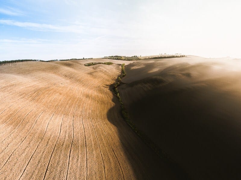 Italy’s famed golden hills are captured with beautiful aerials by photographer Gábor Nagy. With dramatic sweeping views, and unique vertical perspectives, Nagy shows us the neatly planted fields and tall thin shadows from the Mediterranean Cypress trees.
