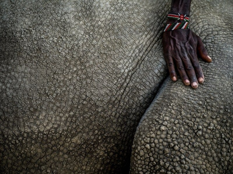 Photojournalist Justin Mott has a powerful series that shows the love that the wildlife guards have for their rhinos friends. We see these gentle giants being touched and leaned upon, and sense the tragedy in their eyes.