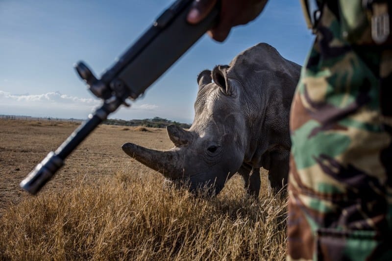 This tragic case of humans vs. the natural world involves the critically endangered Northern White Rhino, of which two remain, in the entire world. You read that right. One, two. And since they are both females, the species is set to go extinct in the next few years. For the time being, however, these two beautiful females are being guarded around the clock in Kenya.