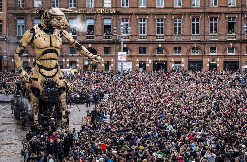 The creatures are the work of La Machine, a French production company that specializes in such wild and daring robots. The event draws over 600,000 people to the streets of Toulouse, and shows what creativity and engineering can do, when put toward such lofty goals.
