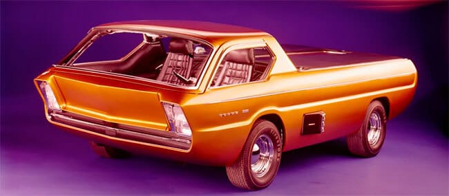 We’re not often the classic car bunch, but this one-of-a-kind Dodge Deora seems too unique and clever not to share. Based on an A100 pickup, the heavily customized body is the work of Mike and Larry Alexander of Detroit Michigan, creating a snub nosed, yet strangely delightful design. The gold paint, yoke steering wheel, and very unique front door makes the Deora even more alluring. Via Design You Trust:
