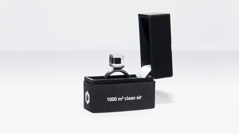 But his concept goes much further than that. Indeed, the soot and smog that is captured by the tower is then compressed into a tiny cube, and sealed within a glass enclosure, creating a one-of-a-kind ring. That ring represents 1,000 square meters of newly cleaned air, and the purchase of it helps to grow the project further.