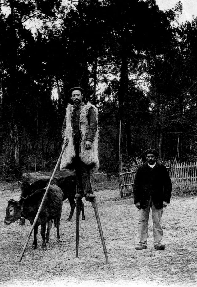 So shepherds strapped on stilts called échasses, and suddenly had a bird’s-eye view of their flocks. With a long staff in hand for balance, they became elegant walkers of the sky, able to cover ground quickly and spot strays with ease.