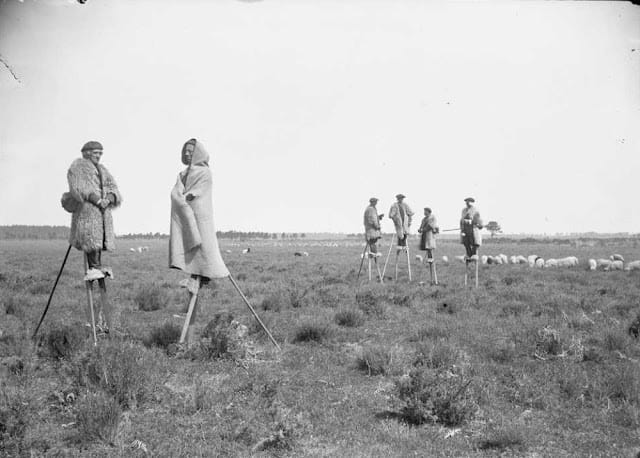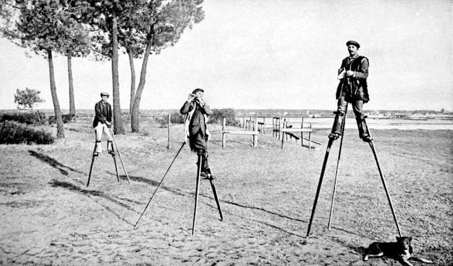 In the windswept region of Landes, in southwestern France, 19th-century shepherds towered above the marshy heathland. They were striding gracefully across soggy fields on wooden stilts, sometimes over five feet tall.
