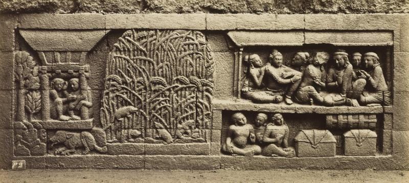 Rice plants portrayed in this 9th century relief from Indonesia.