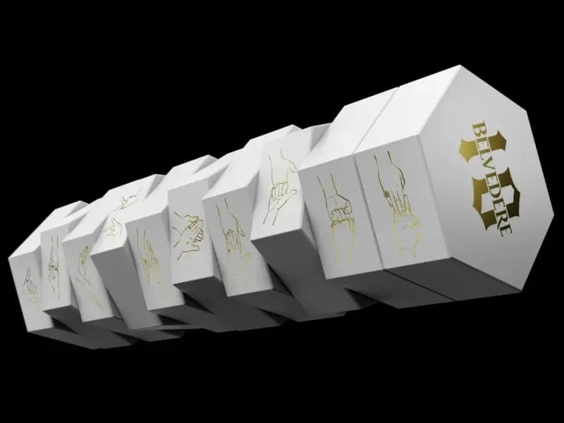 The bottle itself is a ten-tiered tower, inspired by cut diamonds. Its hexagonal packaging mimics that shape, requiring precise alignment of special hand symbols—like a secret handshake—to unlock the vodka inside.