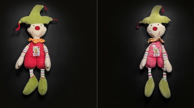 Showing stuffed animals in their brand new, store-bought condition, followed by their well-loved, worn-in condition, we see the way these animals bring love to their owners.