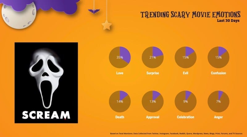 In addition to the top scary movies for the holiday season, we dive into trending scary movie emotions, ranging from love to evil to anger and death.