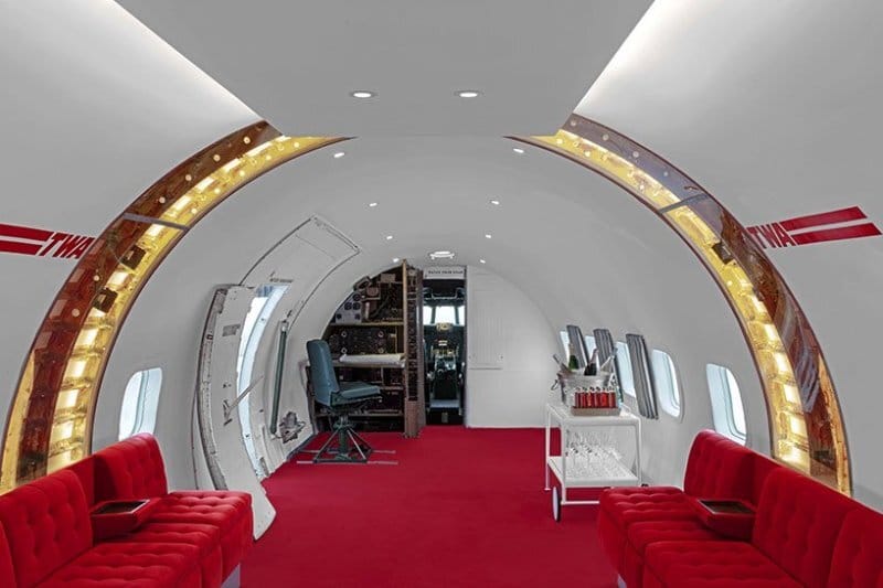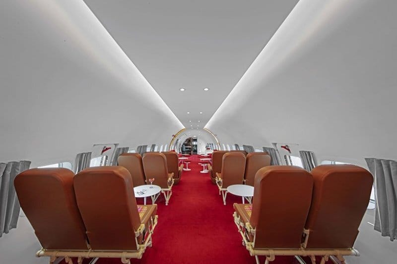 It’d be such a fun experience as a guest to walk into this vintage plane and grab a cocktail, knowing you don’t have to rush down the aisle to find your cramped seat. Vintage red carpet and Eero Saarinen furniture help to cement the plane to the past, while letting it soar as a hotel destination. Via DesignBoom: