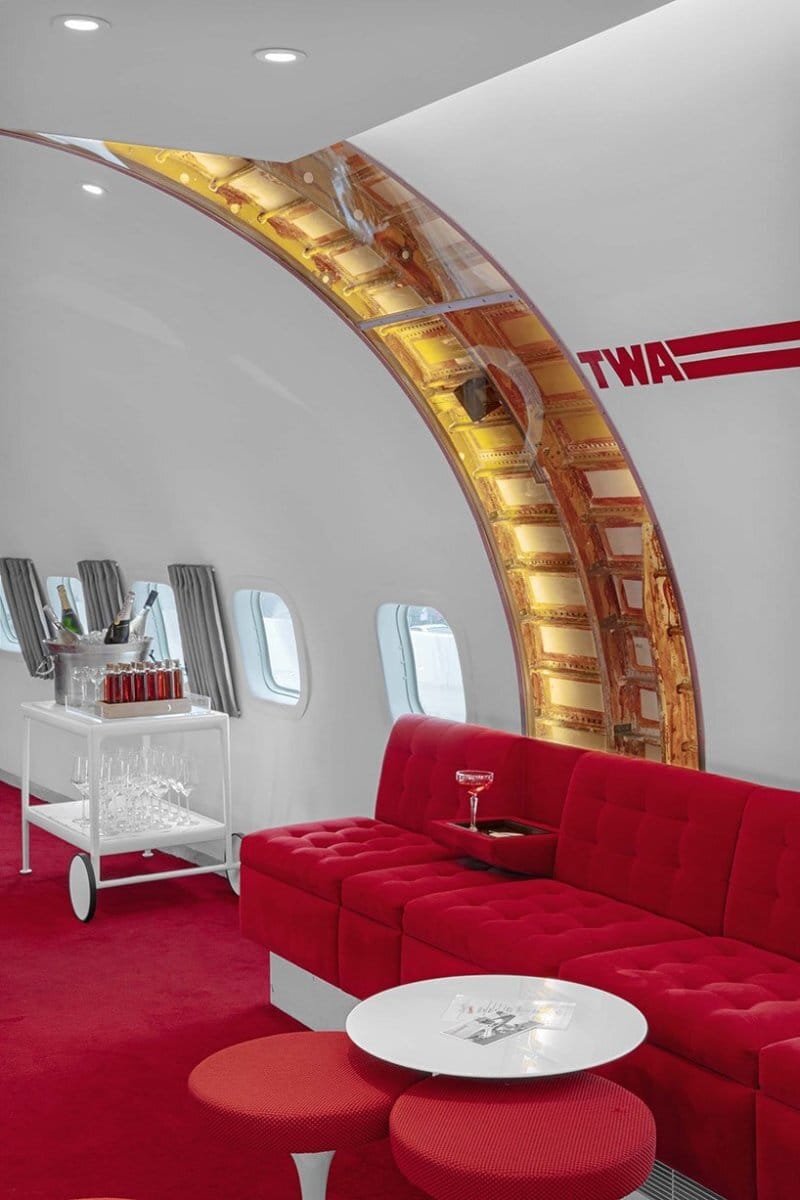 The TWA Hotel revived a classic architectural gem, in the Eero Saarinen-designed JFK airport terminal. We were thrilled to see they were keeping a mid-century modern aesthetic throughout, while creating a thoroughly contemporary hotel. Now, they’re upping their game further, with the addition of a 1958 Lockheed Constellation Strainer that serves as a massive, one-of-a-kind cocktail bar.