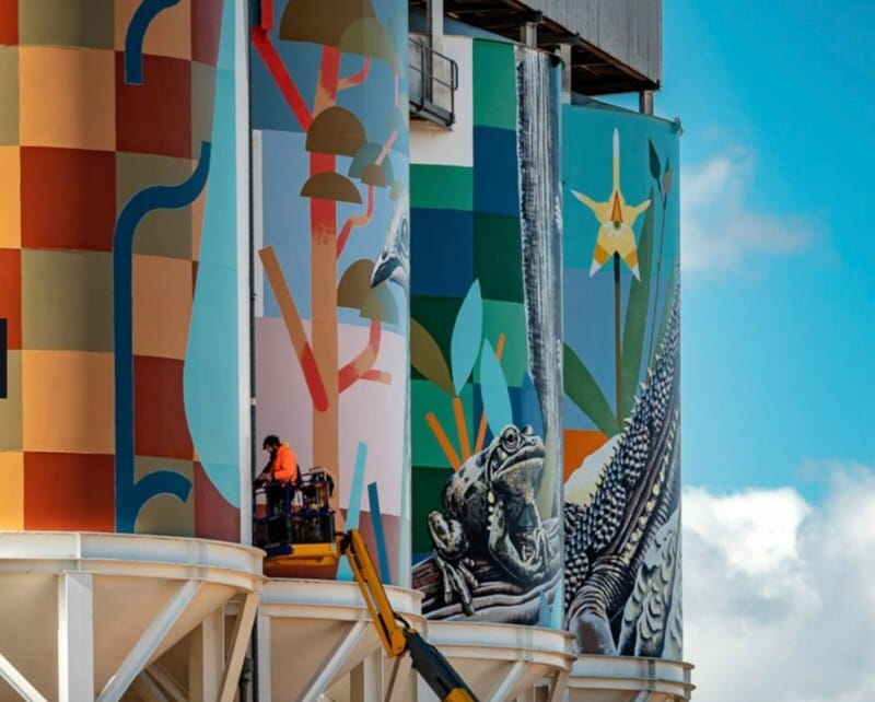 Take art out of galleries. Daub it thrillingly high and deliciously differently. Make it far flung. Monumental. Visible from remote highways and over treetops. Emblazon it in unexpected places.